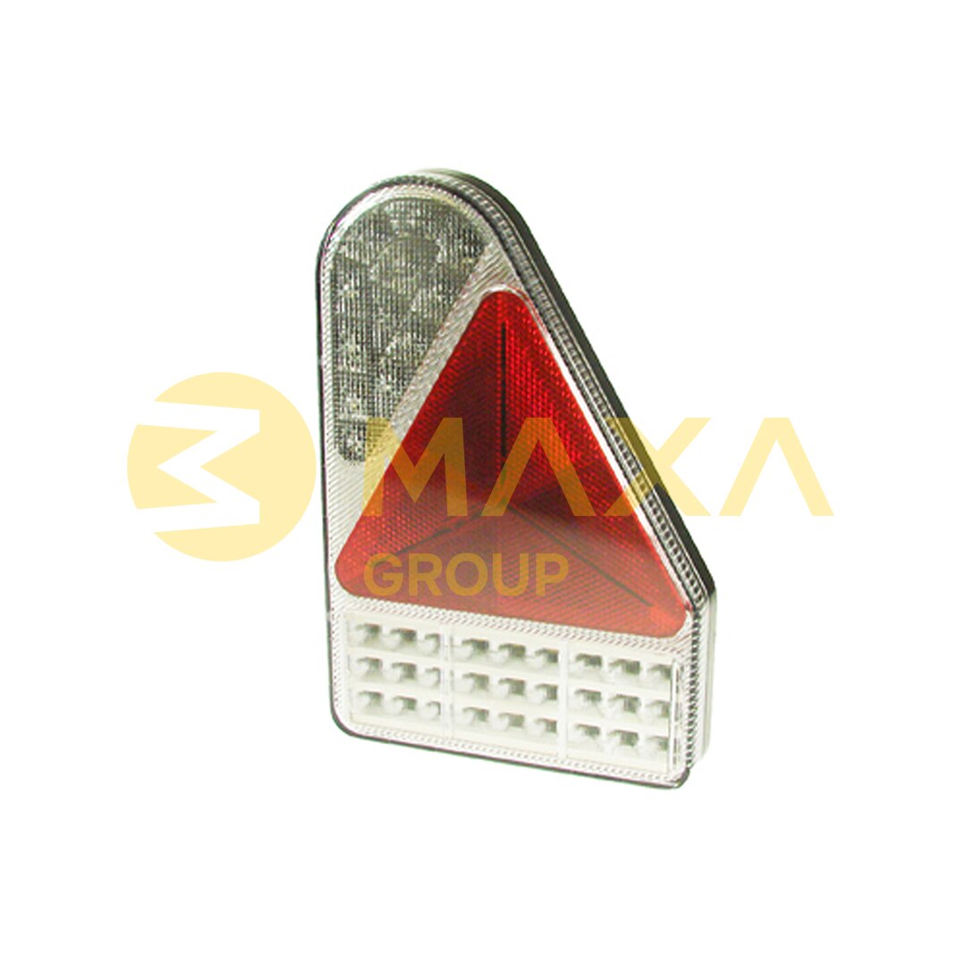 A dual voltage rear LED slimline combination lamp with reflective triangle. Right hand version. Complete with superseal plug and sockets.